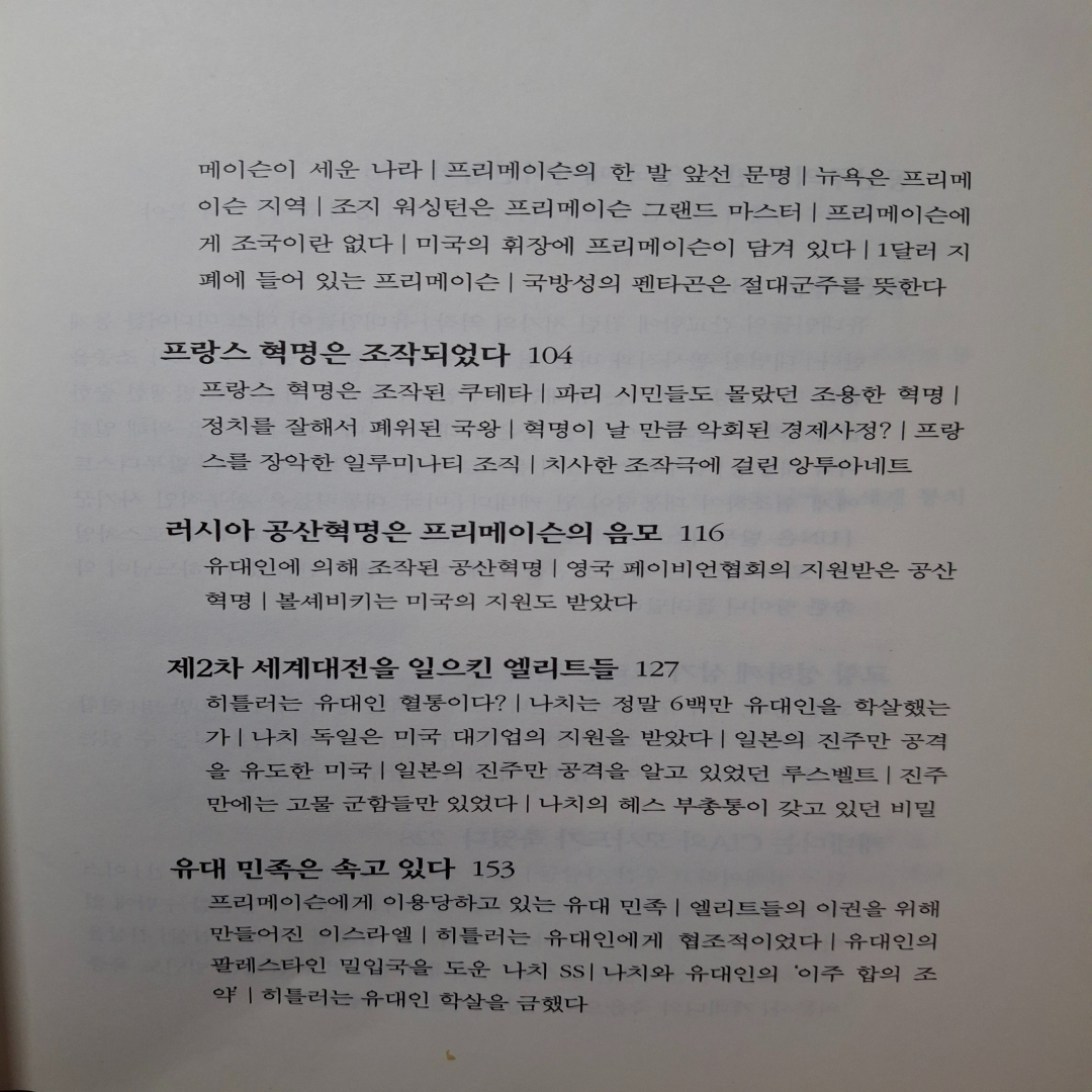 | 전쟁 조작 | 군산복합체가 전쟁을 유도하여 경제적 이익 창출 |