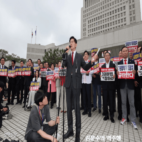 윤석열과 거리를 둔 한동훈계와, 여전히 그를 보호하려는 친윤계 사이에서 김문수는 ‘윤보다 더 우파’라는 자리를 선점하려 한다.