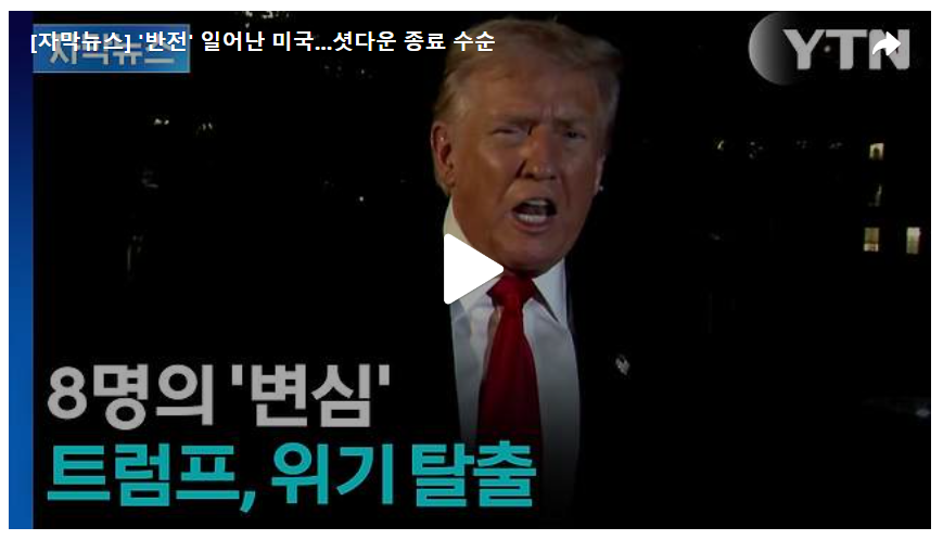 트럼프의 정치 실험이 또 어떤 형태로 등장할지, 민주당은 어떤 반격을 준비할지, 미국의 정치 무대는 여전히 ‘셧다운 시즌2’를 예고하고 있습니다.