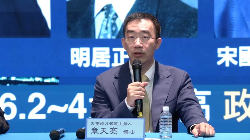 6월 2일, 재미 시사평론가 장톈량(章天亮) 박사가 대만 사단법인 중화민국자유통신협회가 주최한 좌담회에 참석하고 있다. ❘ 대만 엔티디(NTD) 방송 출처: ET