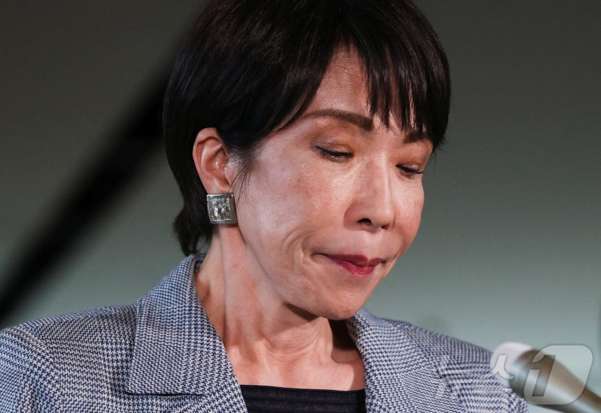 25일 다카이치 사나에 일본 총리가 도쿄 총리관저에서 취재진에게 도널드 트럼프 미국 대통령과의 전화 통화에 대해 설명하던 중 눈을 감고 있다. 2025.11.25 ⓒ 로이터=뉴스1 ⓒ News1