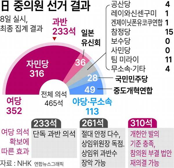 이는 단일 정당이 중의원 3분의 2를 넘어선 첫 사례로, 일본 정치는 지금 커다란 전환점에 서 있다고 볼 수 있습니다.